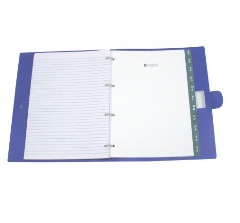 Poznámkový blok standardního formátu A4 se čtyřkroužkovou mechanikou a listovou náplní, navíc s držákem na psací potřebu je doplněn o ABC rejstřík, vyroben z neprůhledného polypropylenu "CLASSIC".